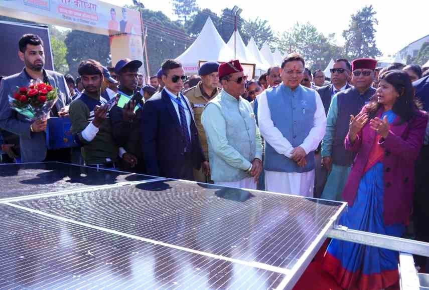 देहरादून। मुख्यमंत्री पुष्कर सिंह धामी ने सोमवार को रेंजर्स ग्राउण्ड देहरादून में ‘ उत्तराखण्ड के प्रथम सोलर मेले दो दिवसीय ‘सौर कौथिग’ का शुभारंभ किया। इस अवसर पर उन्होंने पीएम सूर्यघर योजना, मुख्यमंत्री सौर स्वरोजगार योजना और सोलर वाटर हीटर योजना के लाभार्थियों को अनुदान राशि के चेक प्रदान करने के साथ ही यूपीसीएल मुख्यालय में बनाई गई सौर ऊर्जा आधारित म्यूरल आर्ट का लोकार्पण भी मुख्यमंत्री ने किया। मुख्यमंत्री ने सौर ऊर्जा जन जागरूकता के लिए चलाई जा रही सोलर वैन को भी हरी झण्डी दिखाकर रवाना किया। इसके माध्यम में आगामी सौ दिनों तक सोलर ऊर्जा से संबंधित विभिन्न जानकारी लोगों को दी जायेगी। साथ ही विभिन्न स्टॉल पर जाकर सौर ऊर्जा के क्षेत्र में किए जा रहे नवोन्मेषी प्रयोगों की जानकारी ली।